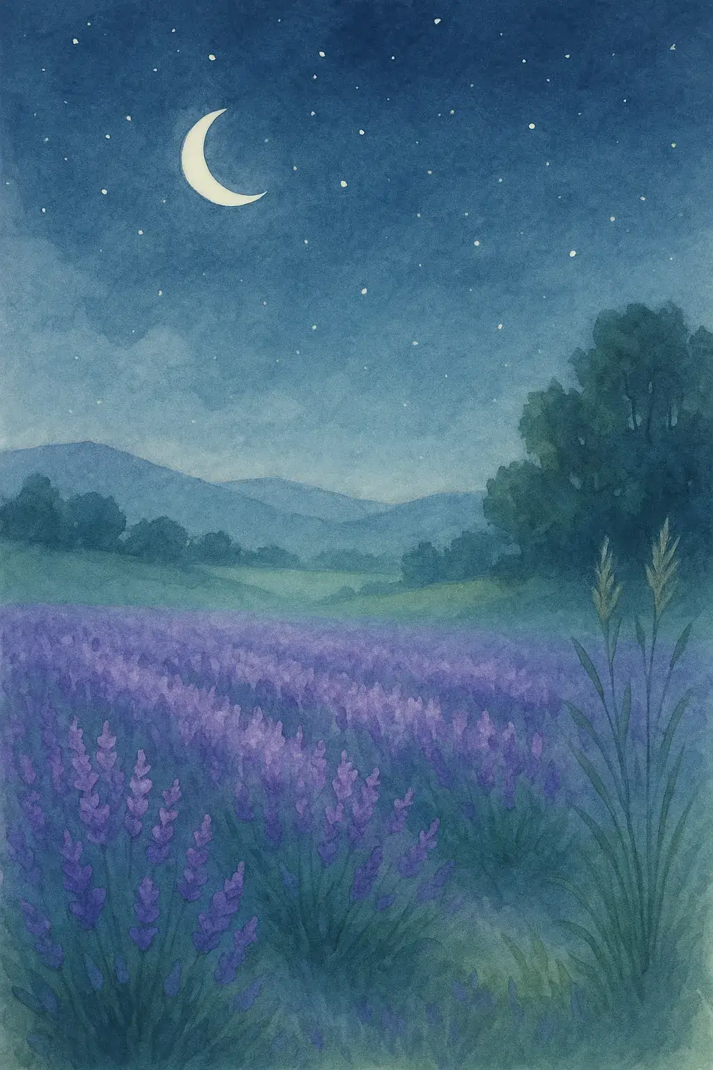 Lavender field under moonlight